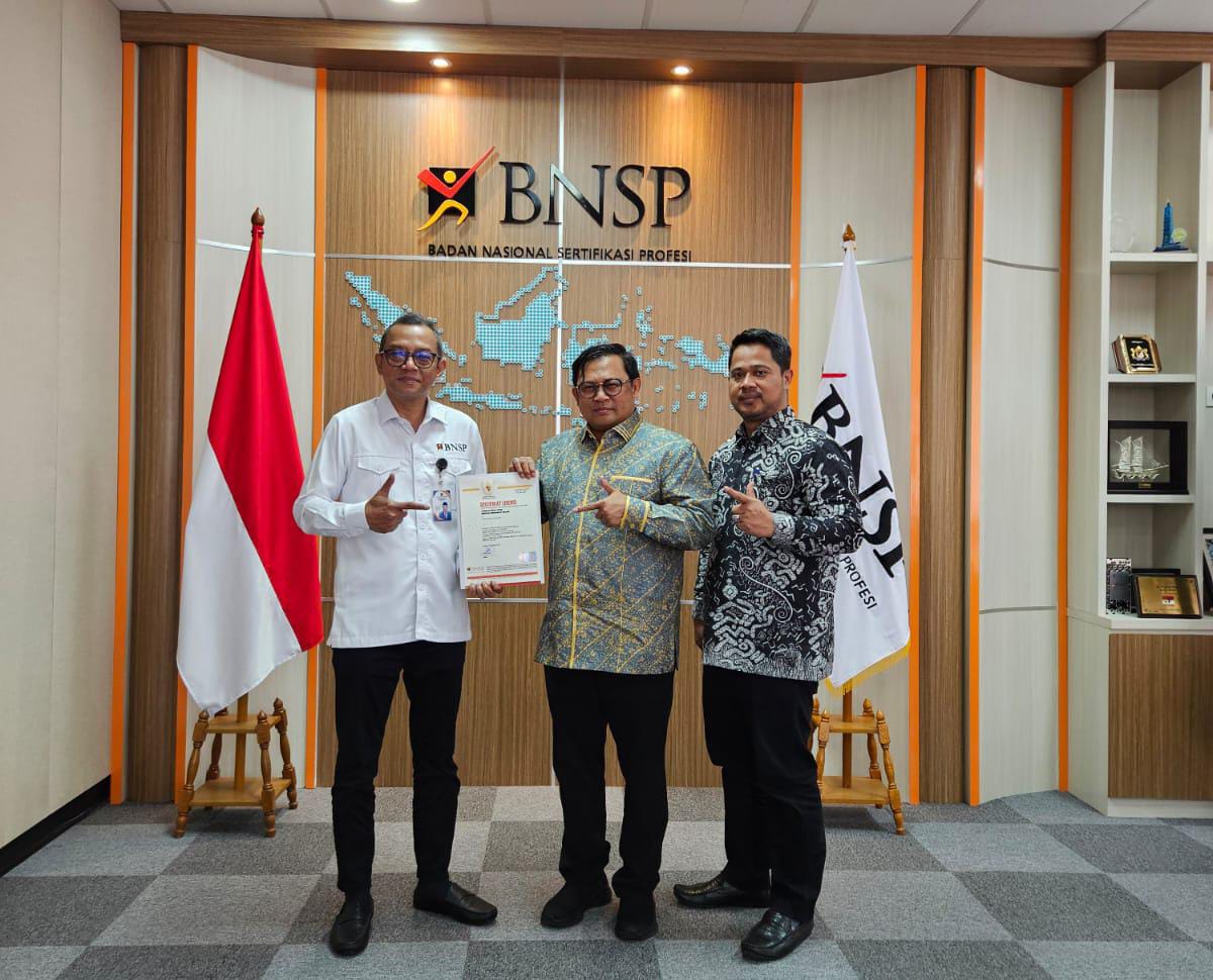 Khittah.co, Makassar – Lembaga Sertifikasi Profesi Pihak Pertama (LSP P1) Universitas Muhammadiyah (Unismuh) Makassar resmi menerima Sertifikat Lisensi dengan Nomor: BNSP-LSP-2565-ID dari Badan Nasional Sertifikasi Profesi (BNSP). Penyerahan sertifikat berlangsung di Kantor BNSP, Jakarta, pada, Selasa 11 Maret 2025.