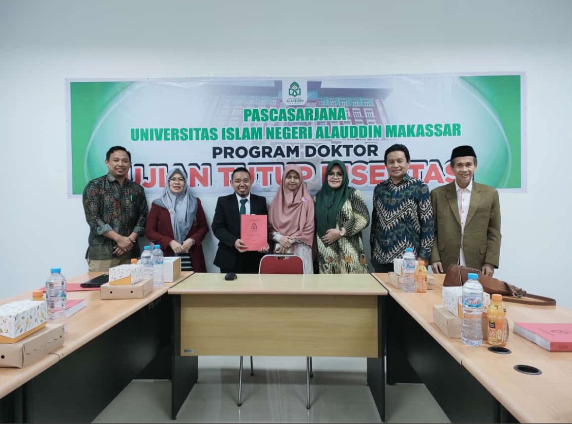 Ujian Tutup Disertasi tersebut di gelar di Gedung di Ruang Ujian Tutup lantai 2 Pascasarjana Universitas Islam Negeri (UIN) Alauddin Makassar 12 Februari 2025.