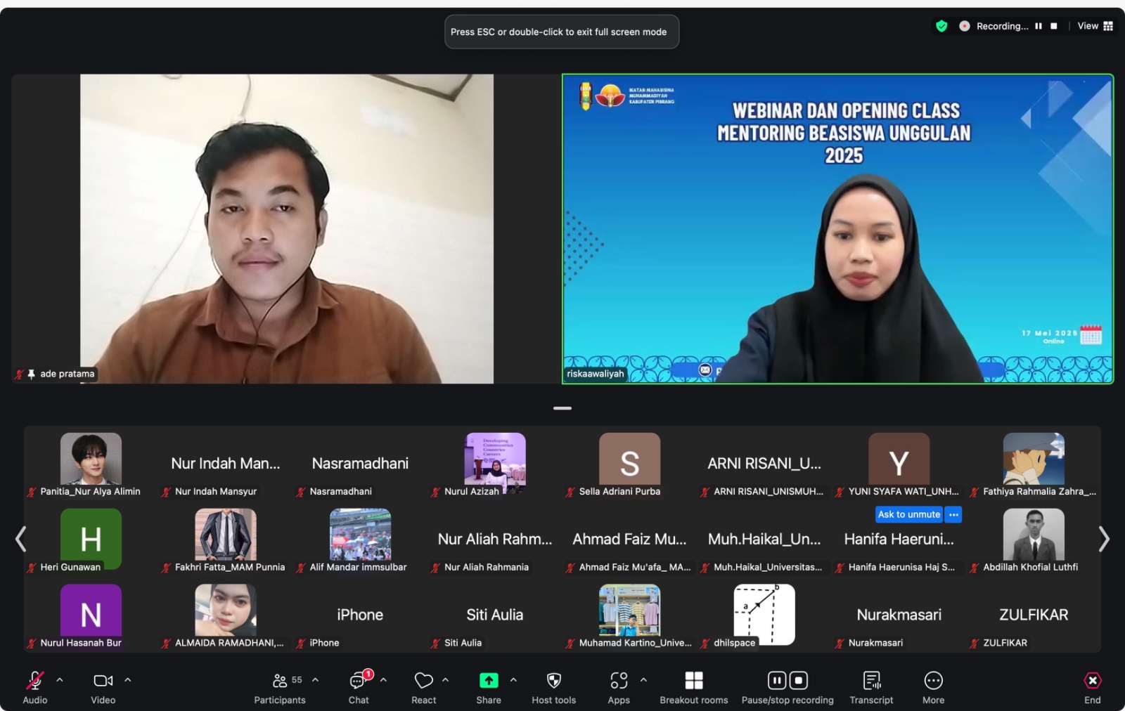 Webinar juga menghadirkan dua narasumber inspiratif, yaitu Sitti Nurkaya Basri (Awardee BU program S1 di Unismuh Makassar) dan Harun Alrasyid (Awardee BU program S2 di Universitas Hasanuddin), yang keduanya merupakan unsur Dewan Pimpinan Daerah (DPD) IMM Sulawesi Selatan. Mereka berbagi pengalaman pribadi, mulai dari proses seleksi, tips menulis esai, penyusunan proposal studi, hingga cara menonjolkan potensi diri.