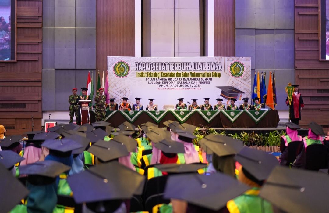 KHITTAH.CO, Makassar — Institut Teknologi Kesehatan dan Sains Muhammadiyah (ITKes) Sidrap kembali mencatat sejarah akademiknya dengan mewisuda 367 lulusan pada prosesi Wisuda ke-20 yang digelar di Golden Lily Hall, Hotel Four Points by Sheraton, Makassar, Sabtu, 3 Mei 2025.