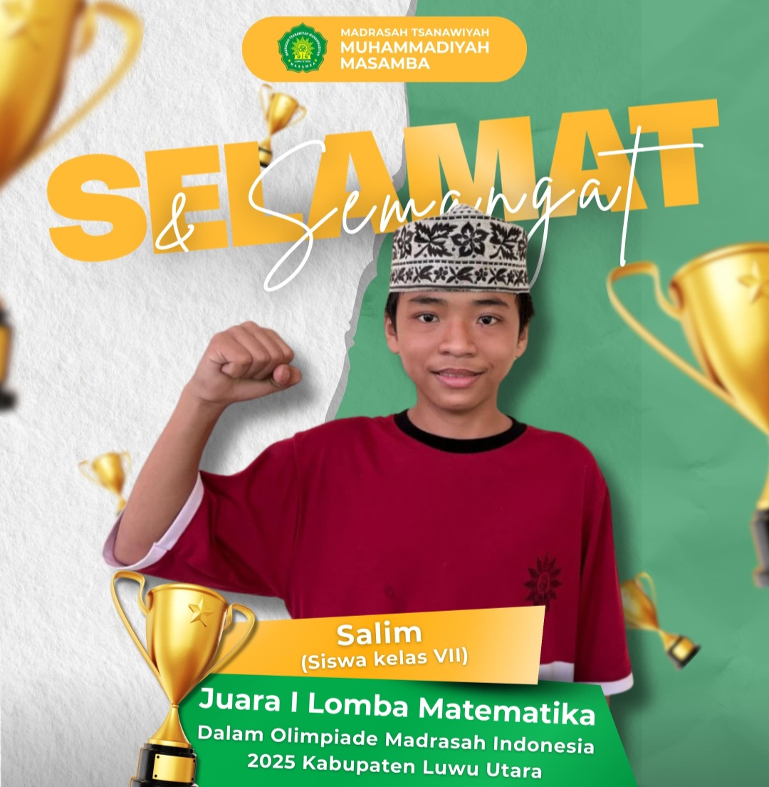 KHITTAH.CO, Luwu Utara – Prestasi membanggakan diraih MTs Muhammadiyah Masamba. Salah satu siswanya, Salim, yang kini duduk di kelas VII, berhasil meraih Juara I bidang Matematika pada Olimpiade Madrasah Indonesia (OMI) 2025 tingkat Kabupaten Luwu Utara. Dengan capaian tersebut, Salim dipastikan melaju ke tingkat Provinsi. Kepala MTs Muhammadiyah Masamba, Eva Zulfiah Hasanah, mengungkapkan rasa syukur […]