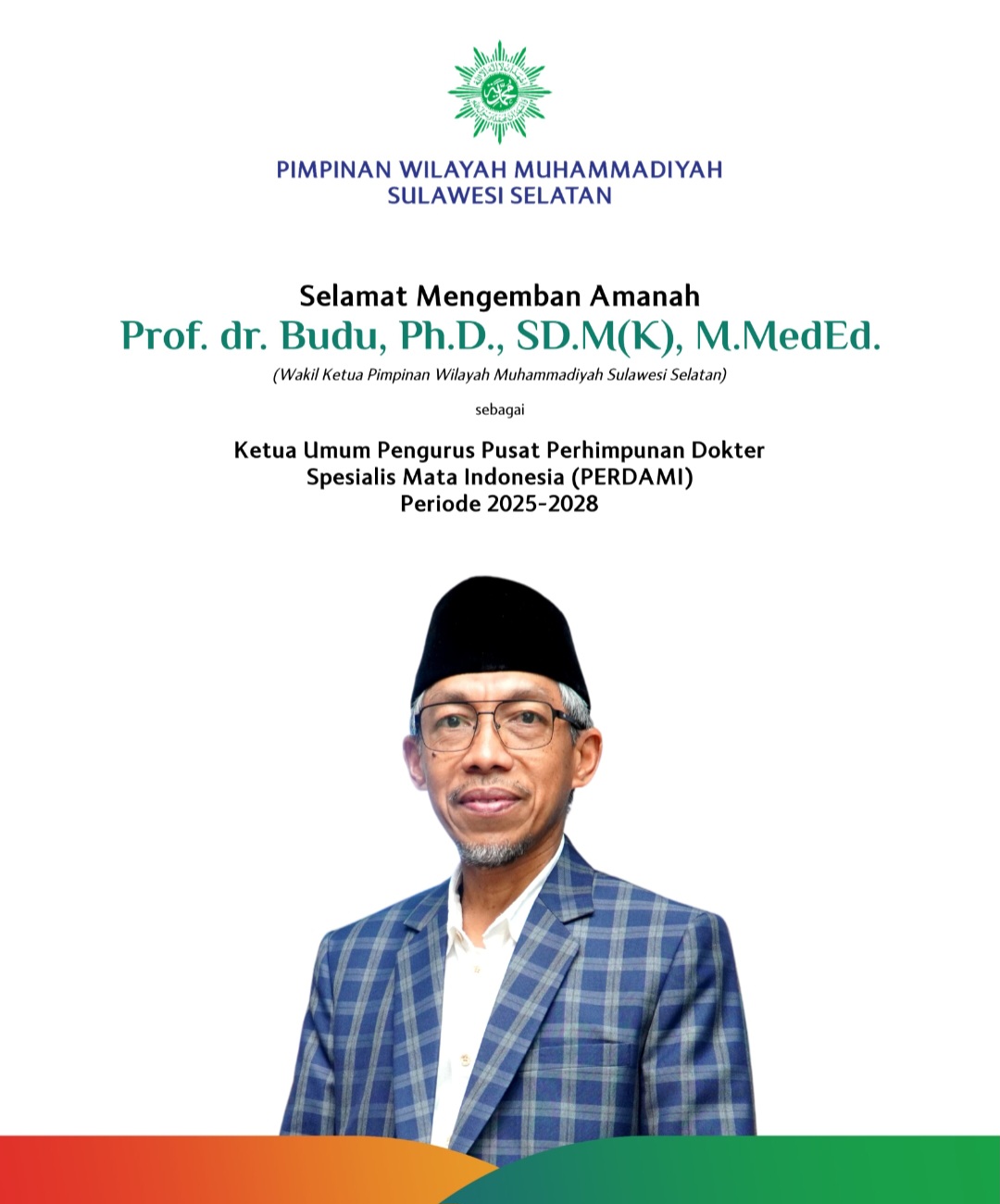 KHITTAH.CO, JAKARTA — Wakil Ketua Pimpinan Wilayah Muhammadiyah (PWM) Sulsel Prof dr Budu, Ph.D, Sp.M(K), M.MedEd kembali terpilih sebagai Ketua Umum Perhimpunan Dokter Spesialis Mata Indonesia (PERDAMI) untuk periode 2025–2028. Dekan Sekolah Pascasarjana Unhas ini terpilih melalui Kongres Nasional XVII PERDAMI di Trans Luxury Hotel Bandung. Kongres yang dirangkaikan dengan PIT Perdami 50 ini diikuti […]